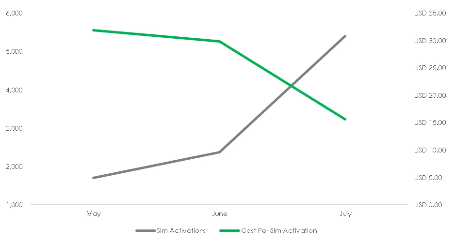 Generating the maximum number of Sim Activations, with the lowest Cost per Sim Activation owing to advanced data collection, audience retargeting, and constant multilevel optimizations (creatives, placements, budget, packages, languages)
